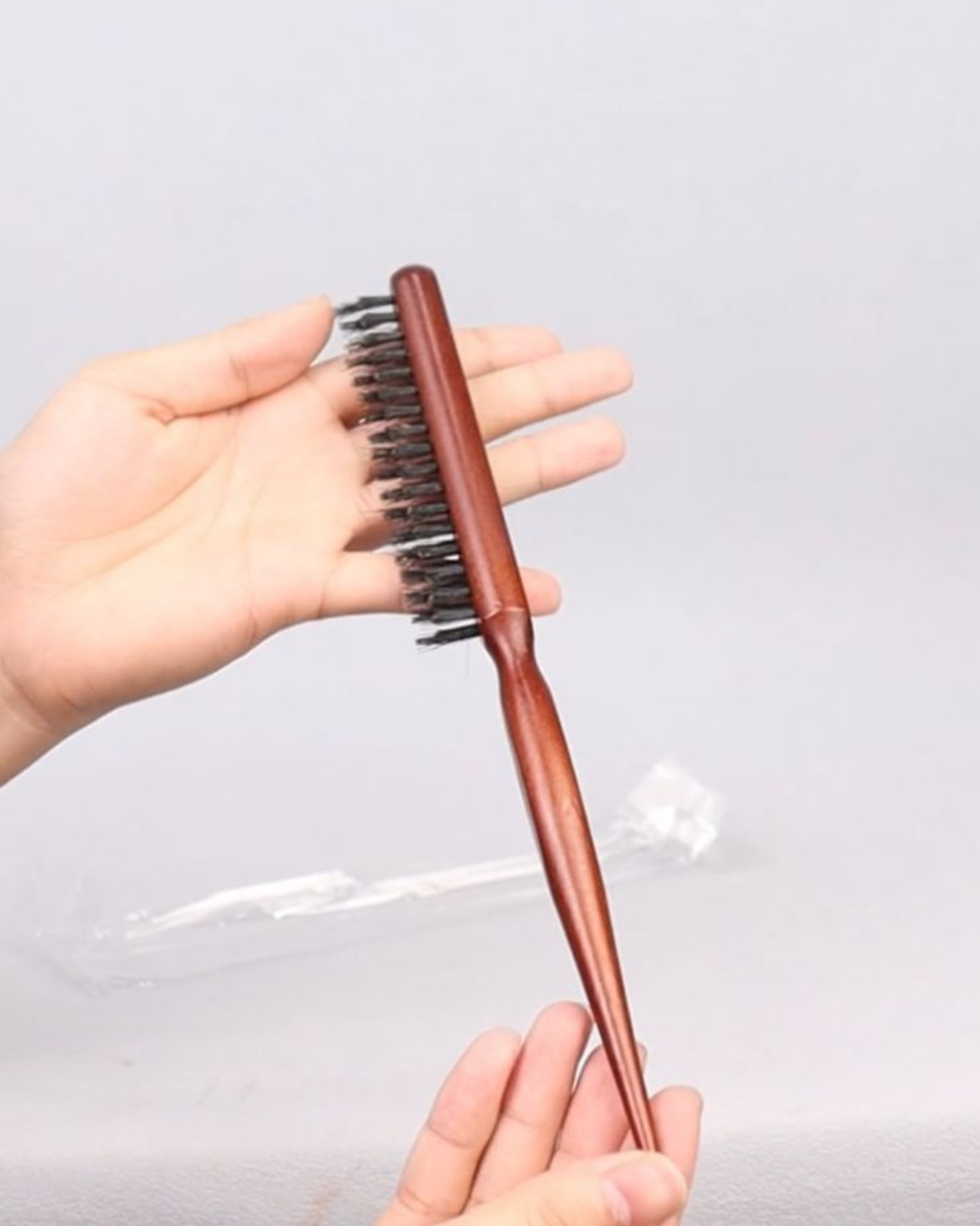 Cepillo pulidor con cerdas mixtas de diferentes alturas y mango de madera ideal para el clean look perfecto.